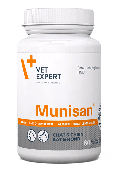 Munisan est un aliment complémentaire associant des glucanes issus de parois de levures sélectionnées et du HMB issu de la leucine. Il participe au développement des défenses naturelles.